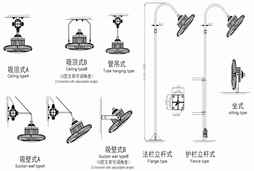 尺寸、配光曲线及安装示意图: